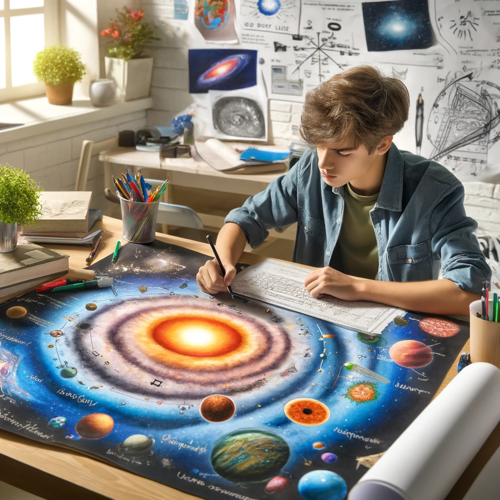 5. Explica tu Modelo: Invita a tus compaƱeros, familiares o amigos a ver tu modelo y explica las distancias entre los planetas y el sol.