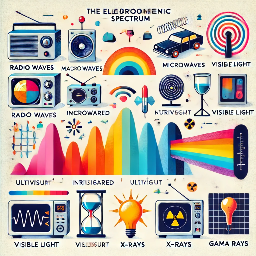 ¡Hola! ¿Te has preguntado alguna vez cómo funcionan los microondas, los rayos X o por qué vemos los colores? Todas estas experiencias están relacionadas con el espectro electromagnético. El espectro electromagnético incluye todas las formas de luz, desde las ondas de radio que usamos para escuchar música hasta los rayos gamma que se utilizan en tratamientos médicos. En esta lección, exploraremos las diferentes partes del espectro electromagnético y cómo afectan nuestra vida diaria. ¡Prepárate para descubrir el mundo invisible a través de la ciencia!
