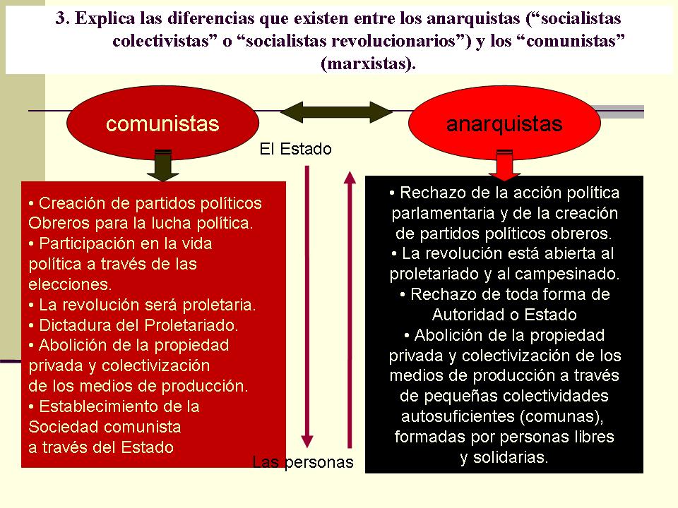 Descripción: Proporciona a los estudiantes extractos del “Manifiesto Comunista” de Marx y Engels, y del “Manifiesto Anarquista” de Bakunin o de otra figura relevante. PĆdeles que comparen y contrasten las ideas clave, y luego discutan en grupo cuĆ”l ideologĆa consideran mĆ”s viable o atractiva, y por quĆ©.