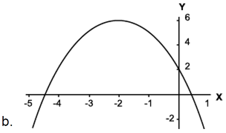 En un juego de vóley, la trayectoria de una pelota se expresa por š‘¦ = 2 + 4š‘„ āˆ’ š‘„2 ; donde y es la altura y x el desplazamiento. Determina la grĆ”fica que corresponde a esta trayectoria.