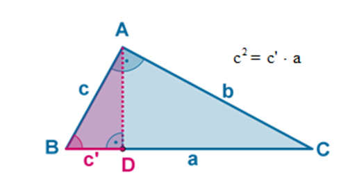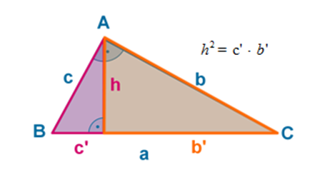 En un triángulo rectángulo, el cuadrado de la altura medida sobre la hipotenusa es igual al producto de las proyecciones de los dos catetos sobre la hipotenusa.