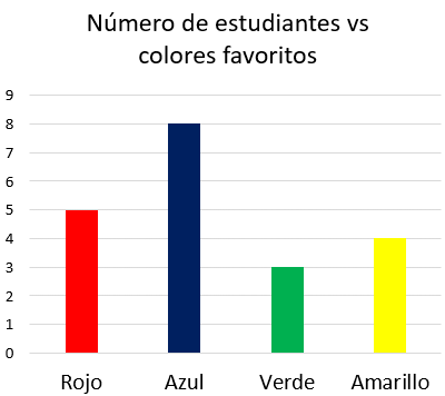 Supongamos que tenemos los siguientes datos sobre los colores favoritos de un grupo de estudiantes, tal como se indica en la figura de al lado. Acorde con ella, la cantidad de estudiantes de gustan de cada color son: