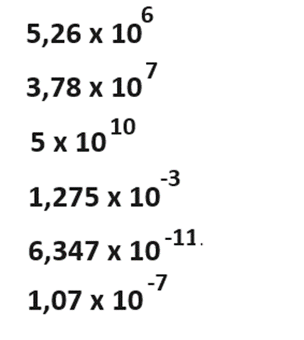 Usando el proceso mostrado en el video, realiza la trasformación de las siguientes cantidades en notación científica a notación decimal:
