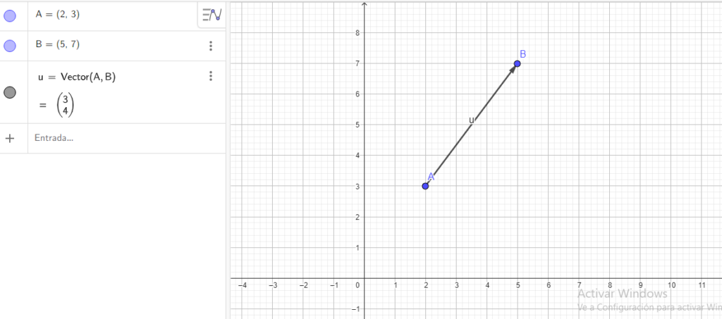 Imagina que tenemos un vector con origen en las coordenadas (2, 3) y extremo en las coordenadas (5, 7). Para ubicarlo: