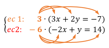 - Multiplicar para igualar coeficientes. Ajusta una o ambas ecuaciones multiplicÔndolas por los factores necesarios para que los coeficientes de una de las incógnitas sean iguales (pero de signo contrario).