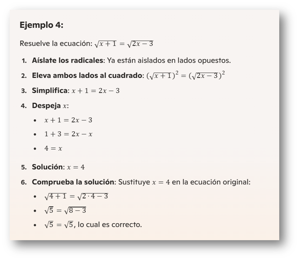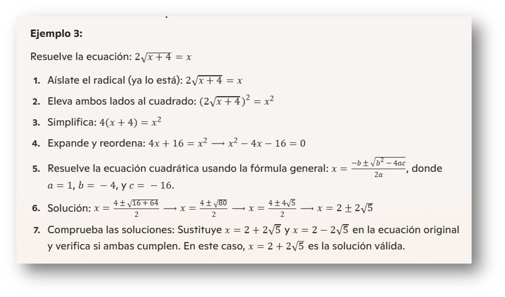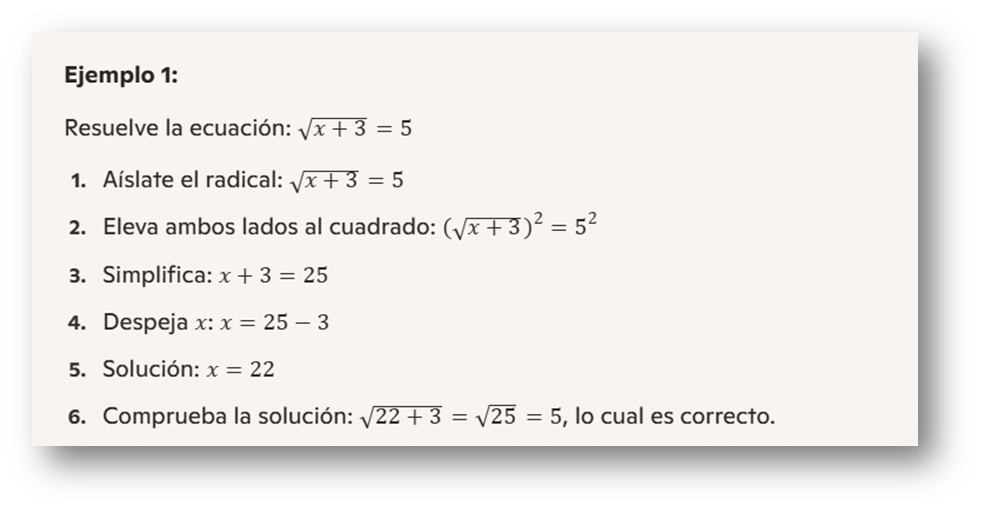 - Aprender y aplicar los pasos bƔsicos para resolver ecuaciones irracionales con radicales.