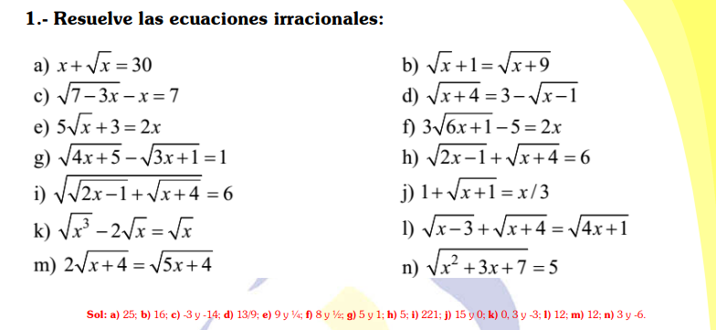 - Identificar y comprender las caracterĆsticas principales de las ecuaciones irracionales.