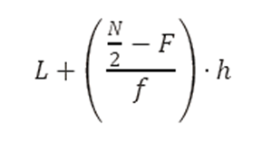 - L = límite inferior del intervalo de la mediana = 30