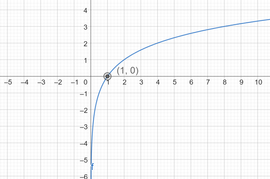 - La función logb(x) intercepta el eje y en el punto (1, 0).