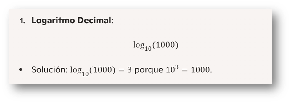 Los logaritmos decimales, tambiĆ©n conocidos como logaritmos comunes, tienen la base 10. Se denotan como logā”10(x) o simplemente logā”(x) cuando la base estĆ” implĆcita.