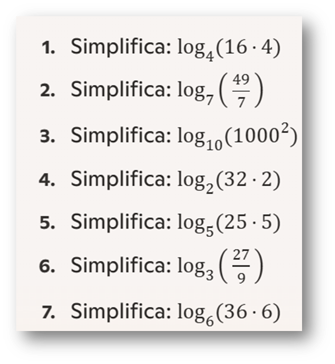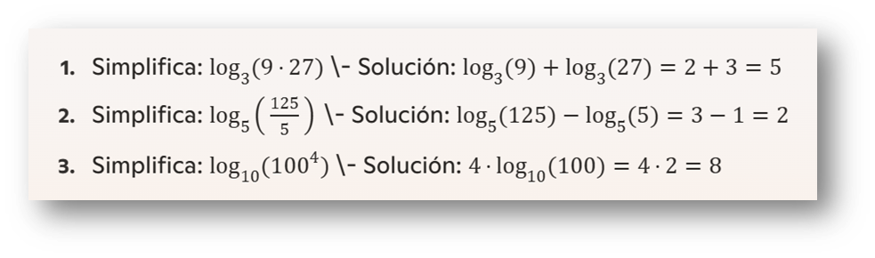 - Aplicar estas propiedades para simplificar expresiones logarĆtmicas.