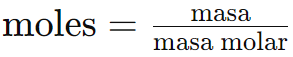 - Para convertir moles a masa, multiplicamos los moles por la masa molar:
