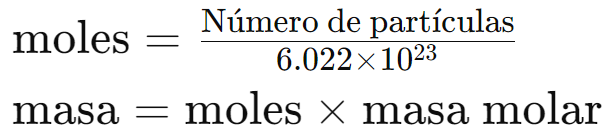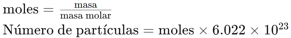- Para convertir masa a número de moléculas, primero convertimos la masa a moles y luego usamos el número de Avogadro: