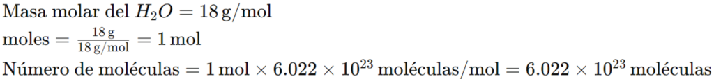 Ejemplo 3: ¿Cuántas moléculas hay en 18 gramos de agua (H2O)?