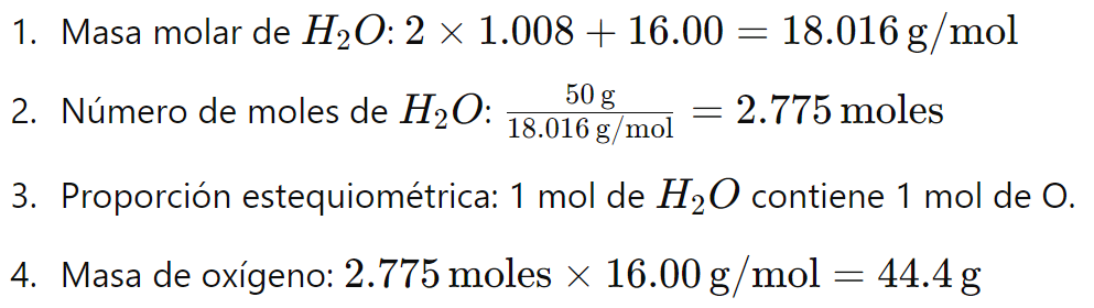 Ejemplo 5: ¿Cuánta masa de oxígeno hay en 50 gramos de H2O?