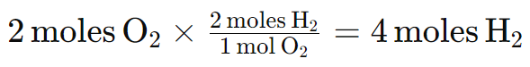 - Primero, usemos la estequiometrĆa de la reacción: Se necesitan 2 moles de H2 por cada 1 mol de O2.