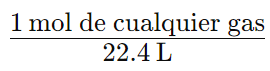 - 1 mol de gas a CNTP = 22,4 L/mol