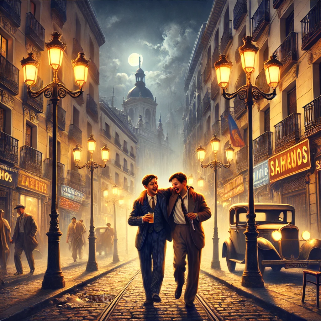 Max Estrella: ¡Saca el corcho, Don Latino! Vamos a morirnos de pura sangre española… ¡Héroes de carnaval! ¡Filibusteros de cartón! ¡Camarilla de grillos!