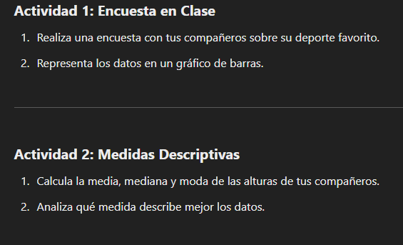 - La estadÃstica organiza y analiza datos para tomar decisiones informadas.