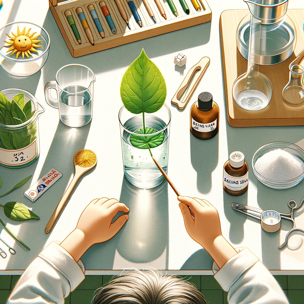 - Coloca el vaso en un lugar soleado y observa la hoja durante una hora.