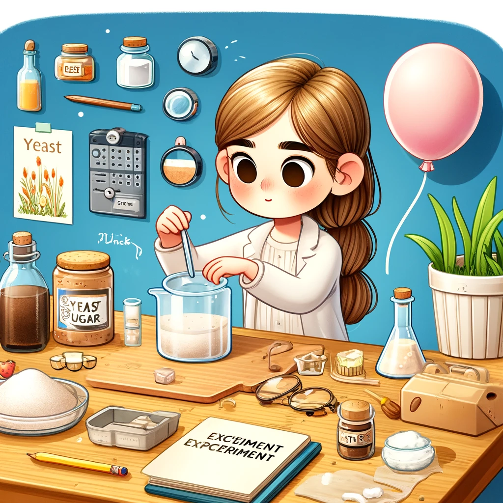 Materiales Necesarios: Levadura, azúcar, agua tibia, globo, botella pequeña, cuaderno y lÔpiz.