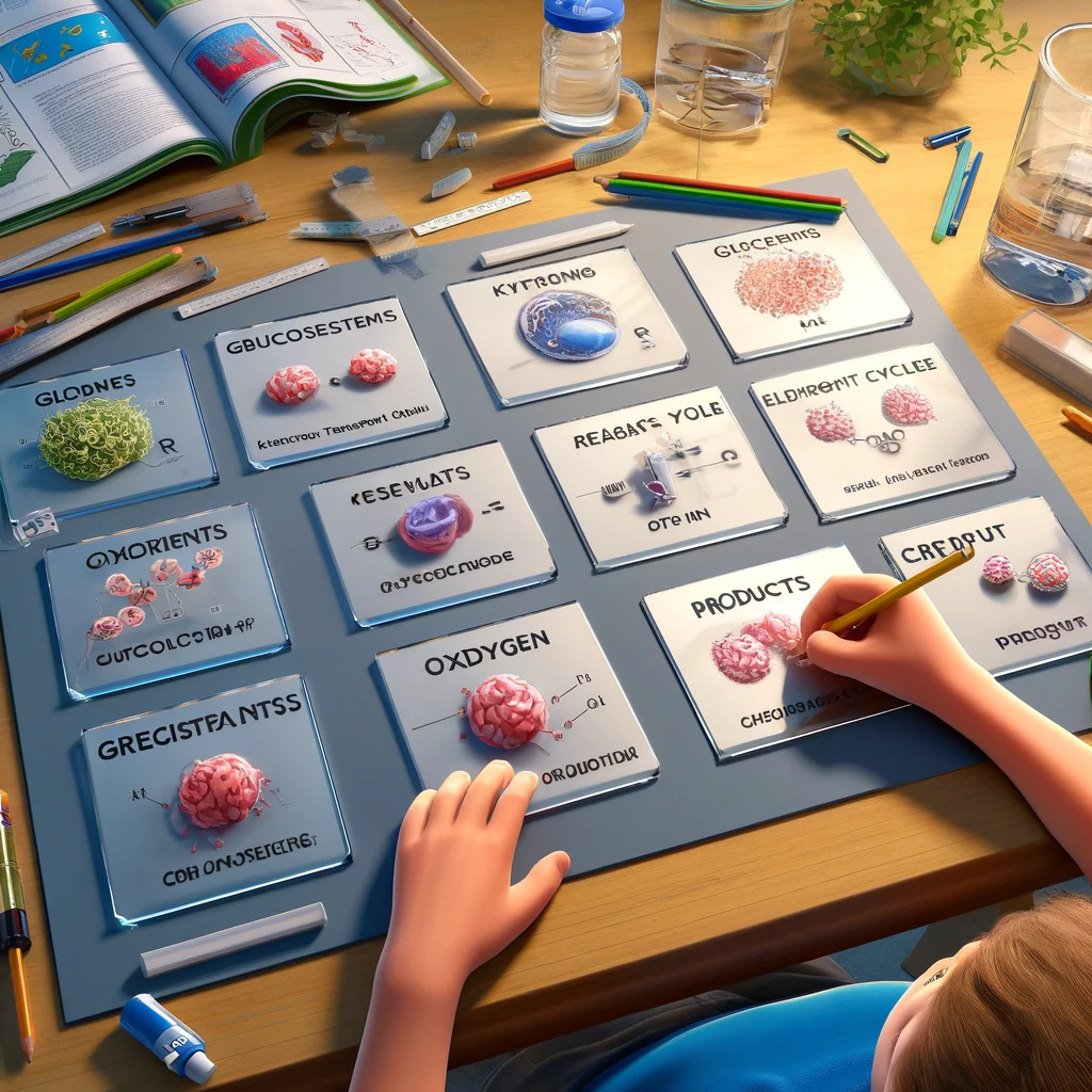 - Materiales Necesarios: Tarjetas con los nombres de las etapas de la respiración celular (glucólisis, ciclo de Krebs, cadena de transporte de electrones), reactivos (glucosa, oxĆgeno) y productos (ATP, dióxido de carbono, agua).