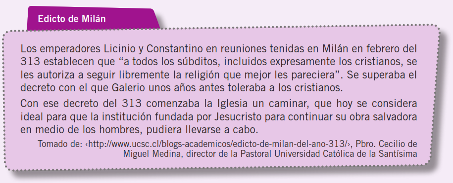El cambio decisivo ocurrió con el emperador Constantino, quien en el año 313 d. C. promulgó el Edicto de MilÔn, permitiendo la libertad de culto para los cristianos. Esta medida marcó el inicio de una etapa de expansión y fortalecimiento de la Iglesia.