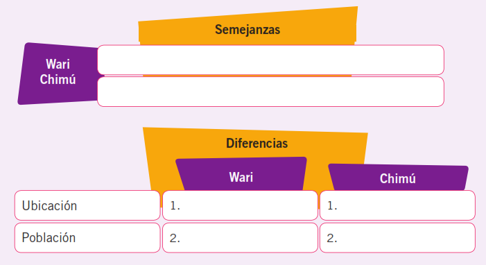 3. En tu cuaderno, completa el siguiente esquema de semejanzas y diferencias entre los imperios wari y chimĆŗ: