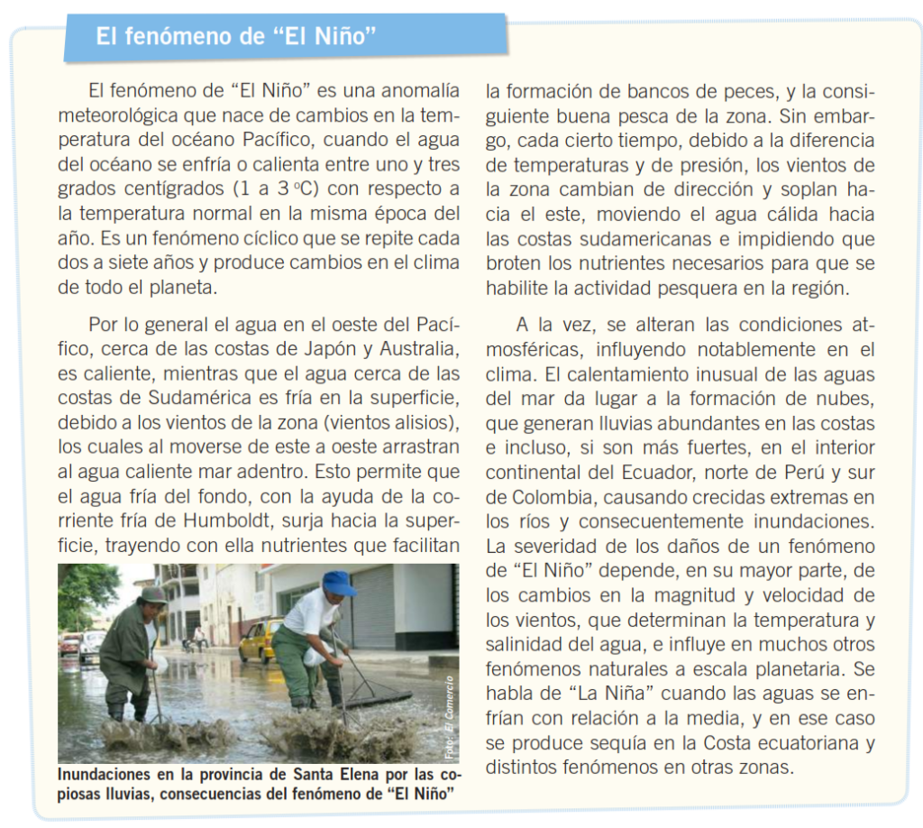 Lee la información del texto sobre el fenómeno de ā€œEl NiƱoā€ y responde: