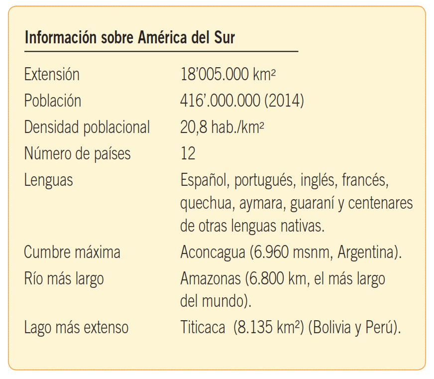 - En tu cuaderno, escribe las características fundamentales de América del Sur: