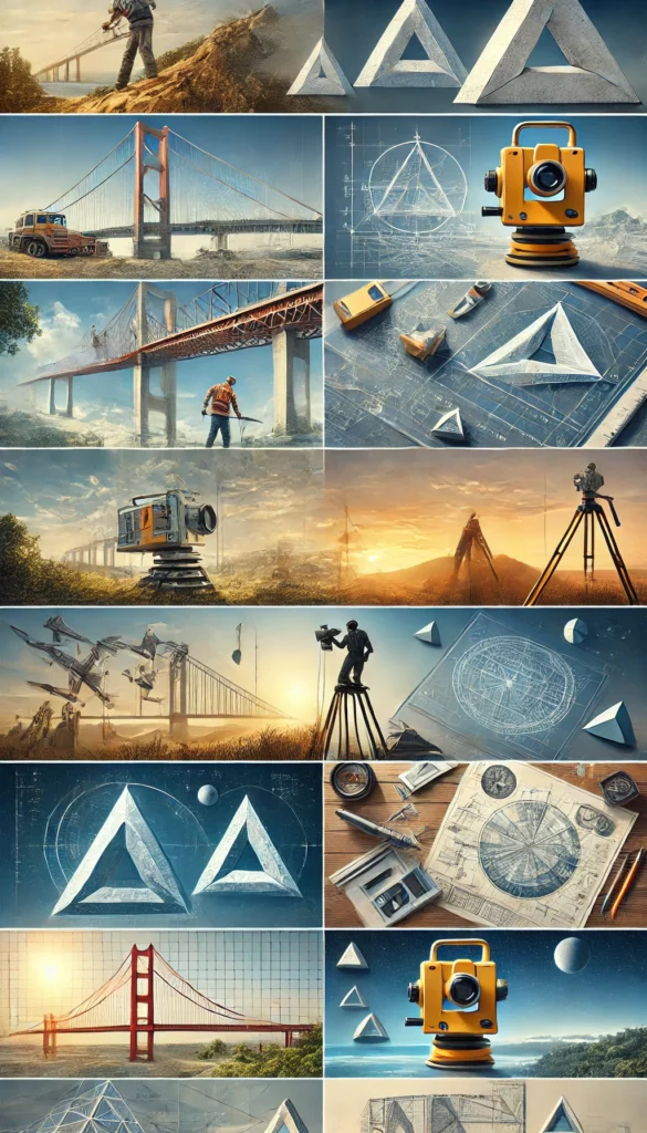 Cálculo de Distancias: En la topografía, los agrimensores utilizan triángulos para medir distancias y ángulos en terrenos, aplicando el teorema de Pitágoras y la trigonometría para obtener medidas precisas.