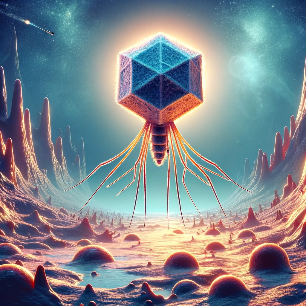Si pudieras ver un fago bajo un microscopio, te sorprenderĆa su apariencia. Imagina una nave espacial con un cuerpo hexagonal
