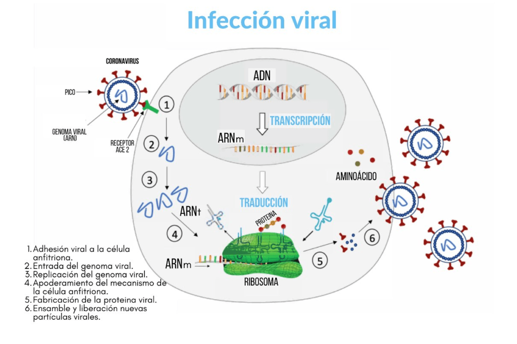 - Reproducción y Ensamblaje: Una vez que el virus ha tomado el mando, obliga a la célula a producir más virus. La célula se convierte en una fábrica de virus, ensamblando nuevas copias del invasor.