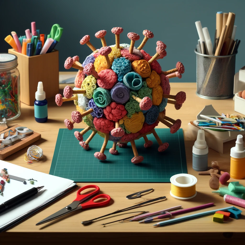 Transformarás materiales de arte en un modelo tridimensional de un virus. Investiga sobre uno que te interese y dale vida con papel, colores y mucha creatividad.