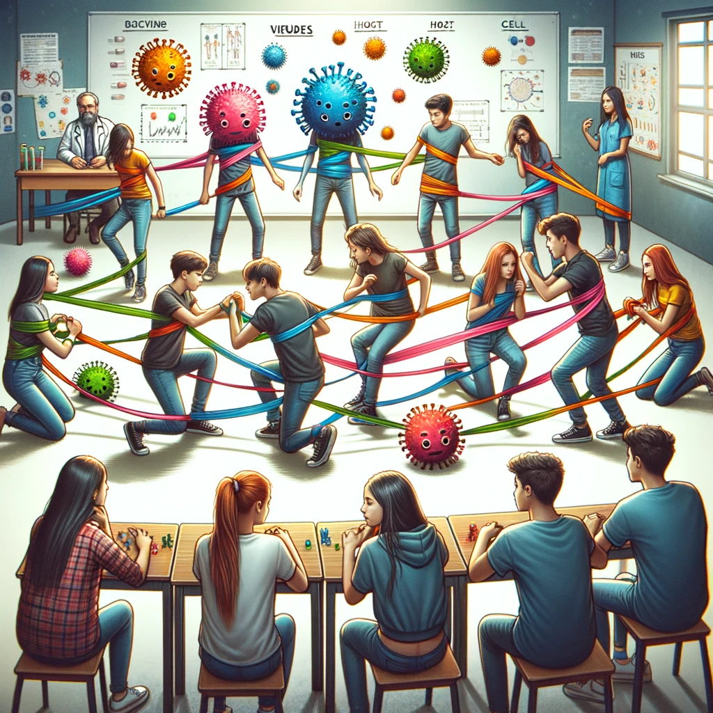 ¿Qué harás?: En este juego al aire libre, te convertirás en un virus o en un huésped. Si eres un virus, tu objetivo es “infectar” a los huéspedes. Si eres un huésped, debes evitar la infección y usar “vacunas” para protegerte.