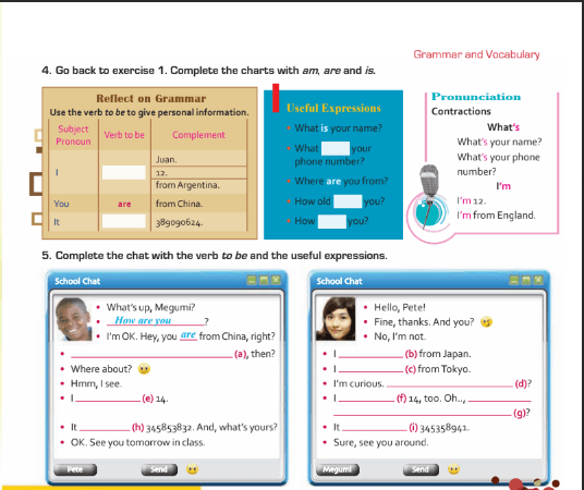 Recognize how to introduce themselves correctly, practice using the verb to be with the exercises marked in unit 1 of the guidebook.