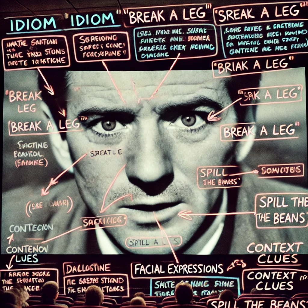 - Task: Pay close attention to the scenes and identify the idioms used by the characters. Write down the idioms and their meanings based on the context of the scene.
