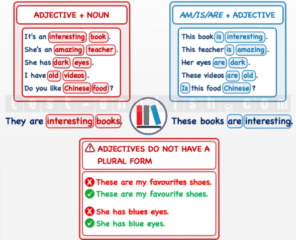 IMPORTANT! Adjectives do not have a plural form. We always use the singular form of the adjective, even if the noun is plural.