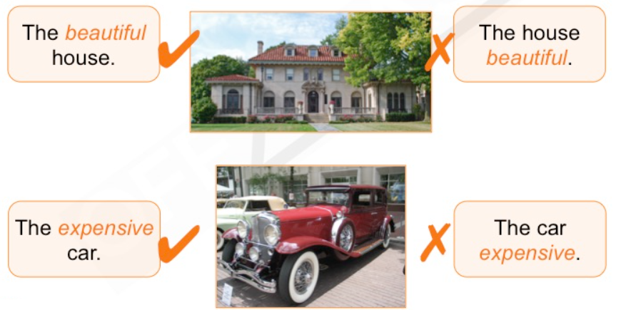 1. Adjectives usually come before the noun they describe.