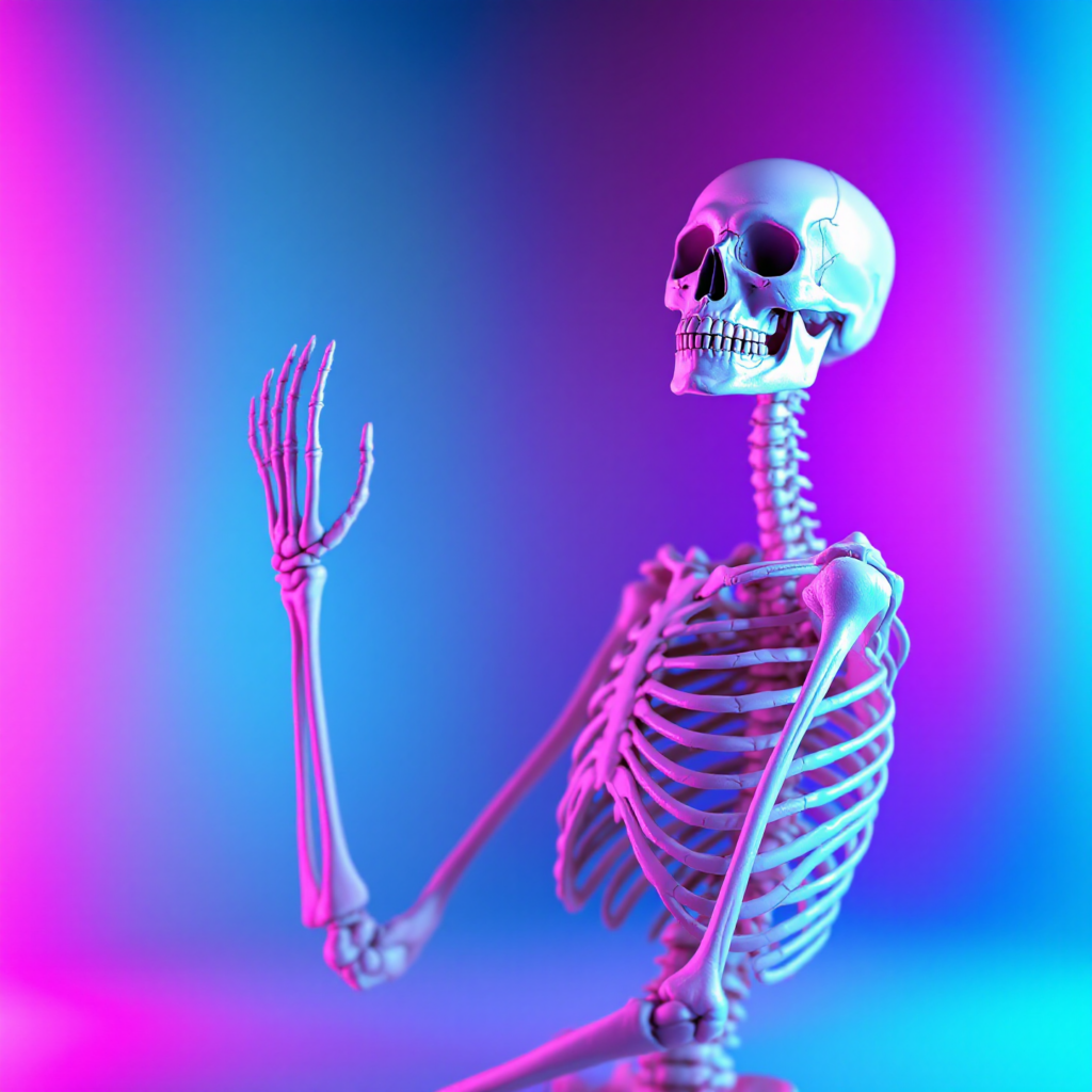 Finally, the skeleton is all the bones in your body. Itās like a frame that helps your body stand up and move. Without it, you would be soft and floppy!