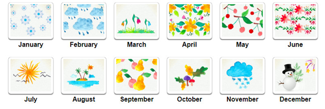 The months are also connected to seasons (spring, summer, autumn, and winter):