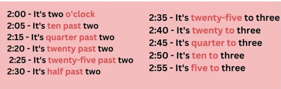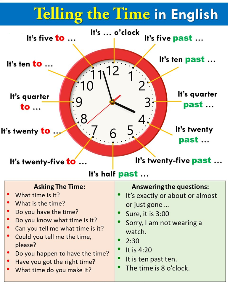 Asking for and telling the time is very important. It helps you plan your day and talk with other people. For example, if you meet friends, go to school, or watch a movie, knowing the time helps you be ready!