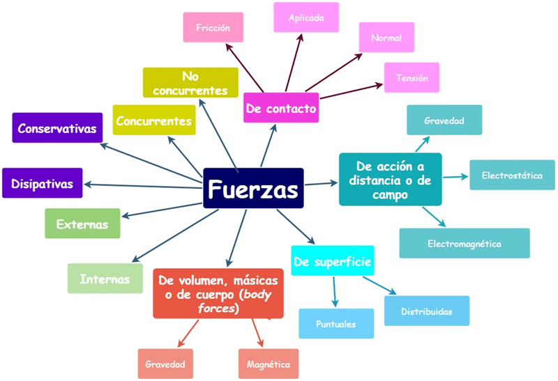 - Se presentan los diferentes tipos de fuerzas que pueden actuar sobre un cuerpo: fuerzas de contacto y fuerzas de campo.