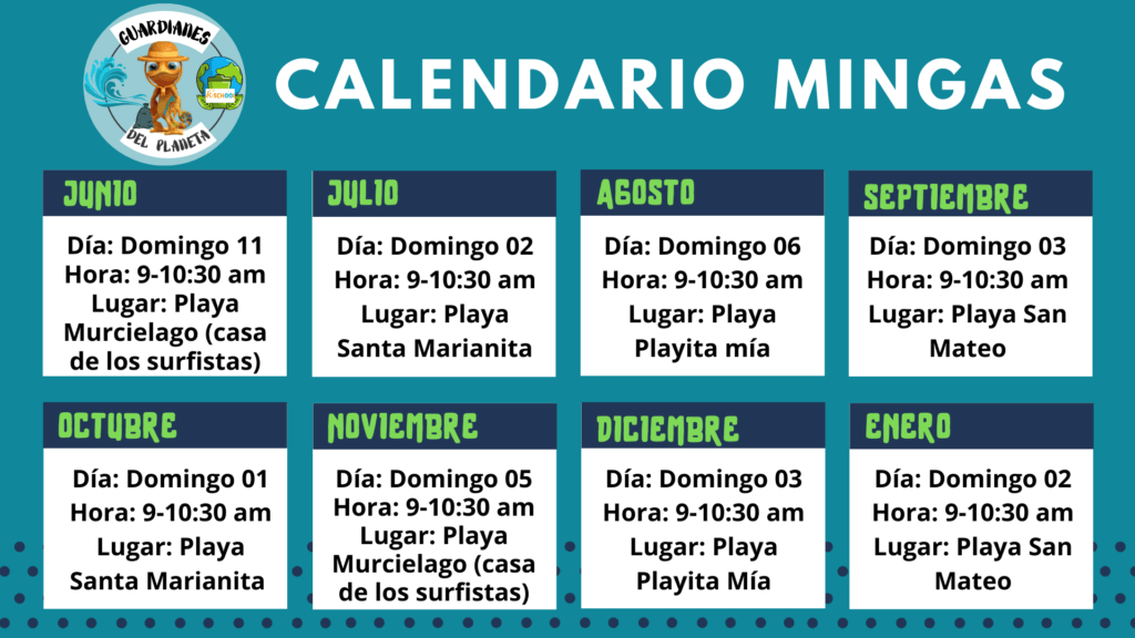 Cuadrante Verde: Creación del calendario mensual de las Mingas KrugerSchool. Planificación.
